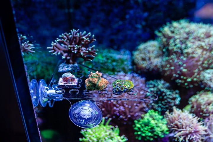 Półka na szczepki koralowców została wykonana z wytrzymałego akrylu, który jest odporny na działanie wody morskiej i jednocześnie wolny od zanieczyszczeń i bezpieczny dla życia w akwarium.