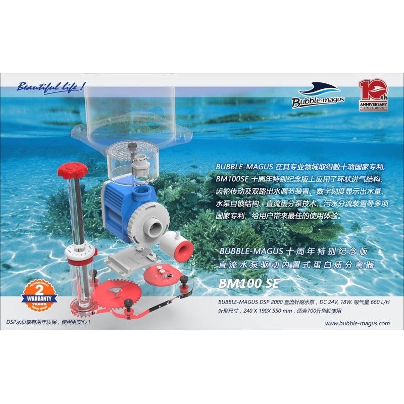 Odpieniacze Bubble-Magus są praktyczne ciche i bardzo wydajne. Skimmery te oferują innowacyjne funkcje wraz z niezawodnymi pompami w przystępnej cenie: co czyni wyróżnia produkty tego producenta na tle konkurencji. Model BM100SE doskonale sprawdza się w zbiornikach od 500 do 700l.