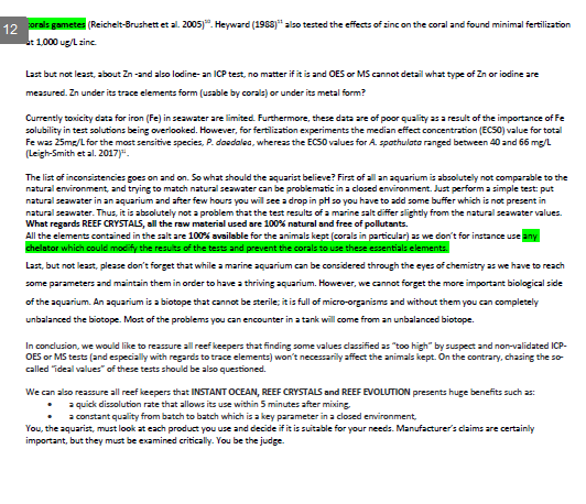 Jest to dopracowany produkt najwyższej jakości, ceniony i uznany przez wielu użytkowników na całym świecie, jest jedną z najczęściej kupowanych soli przeznaczonych dla zbiorników morskich z przeważającą obsadą ryb.