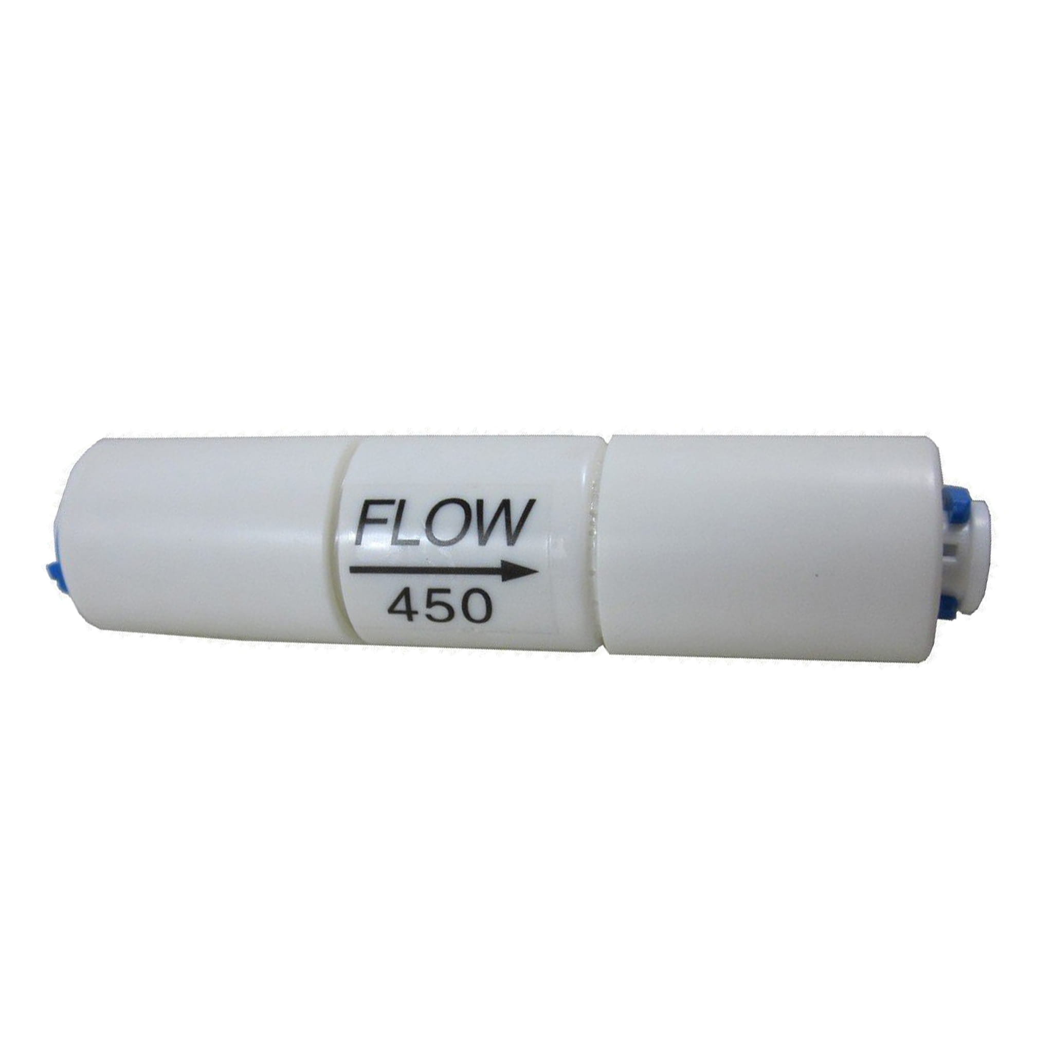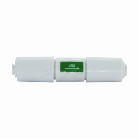 Ogranicznik przepływu (flow restrictor / restryktor). Stosowany w systemach odwróconej osmozy, na odpływie brudnej wody z membrany do ścieku. Podłączenie na tzw "szybkozłączkach".