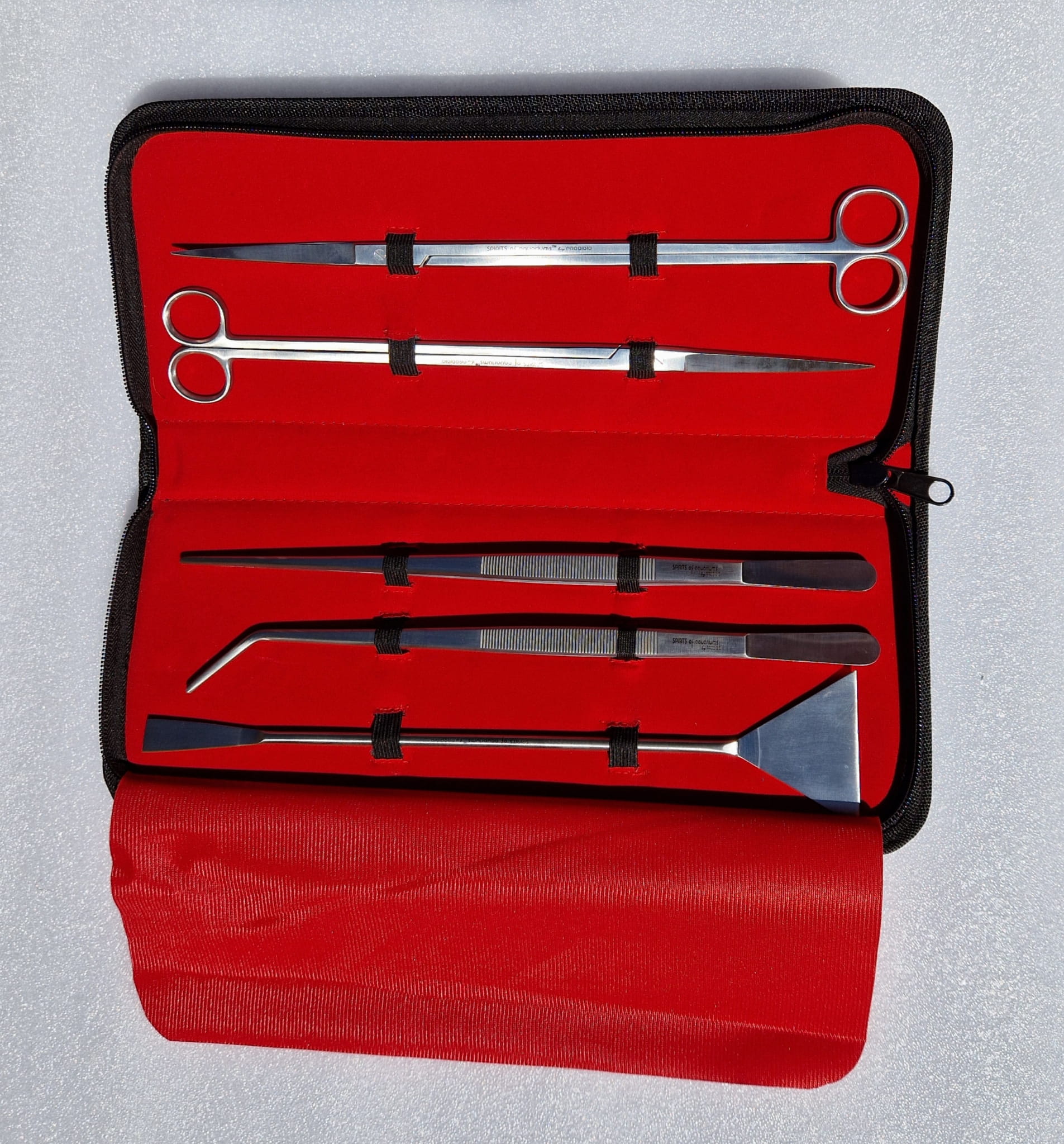 Znany producent akcesoriów akwarystycznych firma Prodibio przygotowała specjalny zestaw narzędzi, w którego skład wchodzi aż 5 elementów. Zostały one wykonane z wysokiej jakości stali nierdzewnej, charakteryzującej się wysoką odpornością na działanie wody. Estetyczne etui, wykończone od środka ciemnym materiałem, utrzymuje w porządku, nasze narzędzia i ułatwia ich transportowanie. Sprawia również, że cały zestaw idealnie nadaje się na prezent, który sprawi radość każdemu akwaryście.