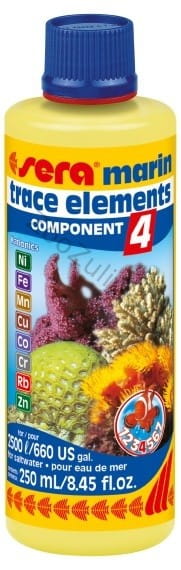 Sera marin Component 4 -trace elements Kationics dostarcza dzienne zapotrzebowanie na ważne pierwiastki śladowe w akwarium morskim.