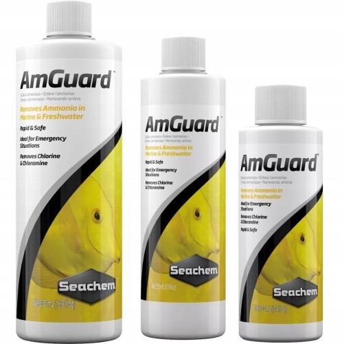 Seachem AmGuard jest najsilniejszym dostępnym na rynku preparatem wiążącym amoniak. W ciągu kilku minut neutralizuje jego wolną formę. Nie ulega rozkładowi przynajmniej przez 48 godzin.