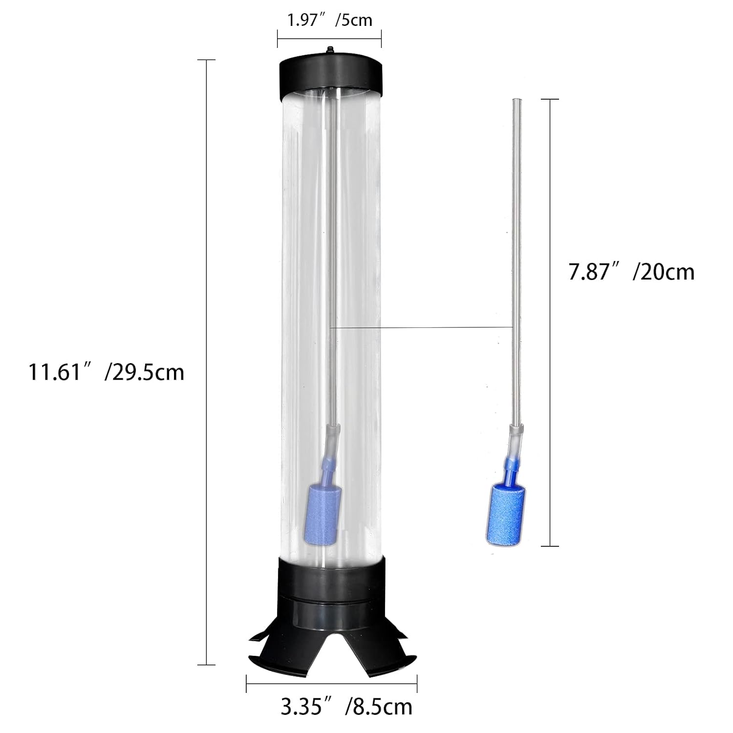 - Rozmiar: wysokość przewodu inkubatora krewetek 16,51 cm x 5,08 cm (wys. x szer.); wymiary calkowite: 25,00 x 8,80 x 8,80 cm
